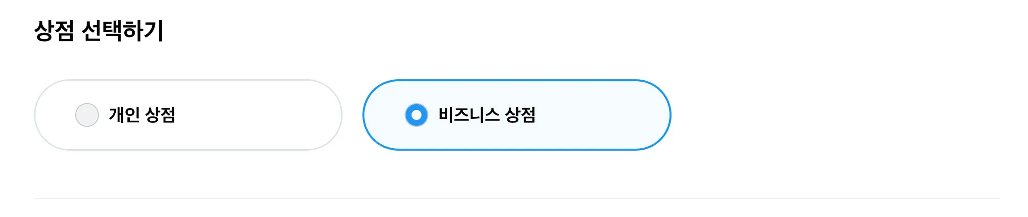 개인 사용자는 상점 타입에서 ‘개인 상점’을 선택합니다
