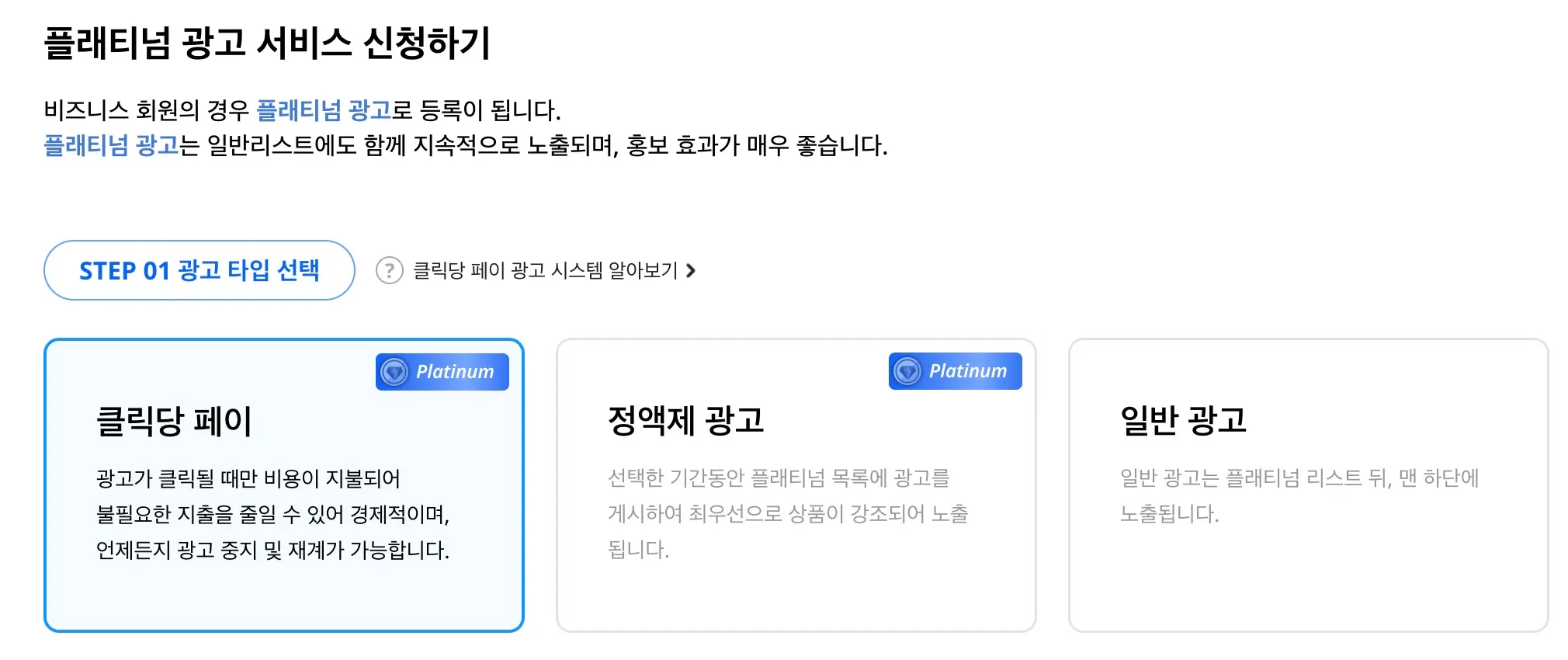 유료광고 2가지 중 선택: 클릭당페이 or 정액제