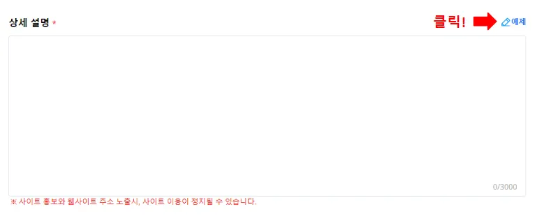 예제가 필요할 경우 우측상단의 ‘예제’를 클릭하시면 예제가 본문에 입력됩니다.