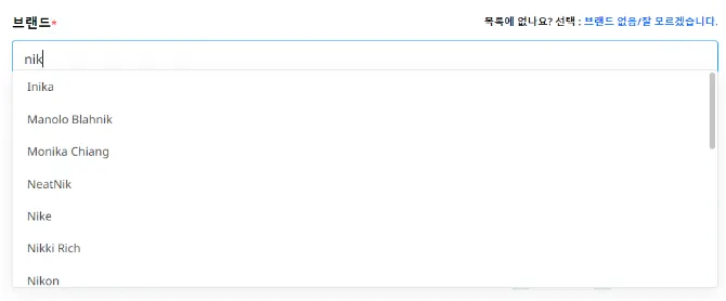 브랜드를 입력합니다. 입력하면서 관련된 브랜드 목록들이 나타납니다.