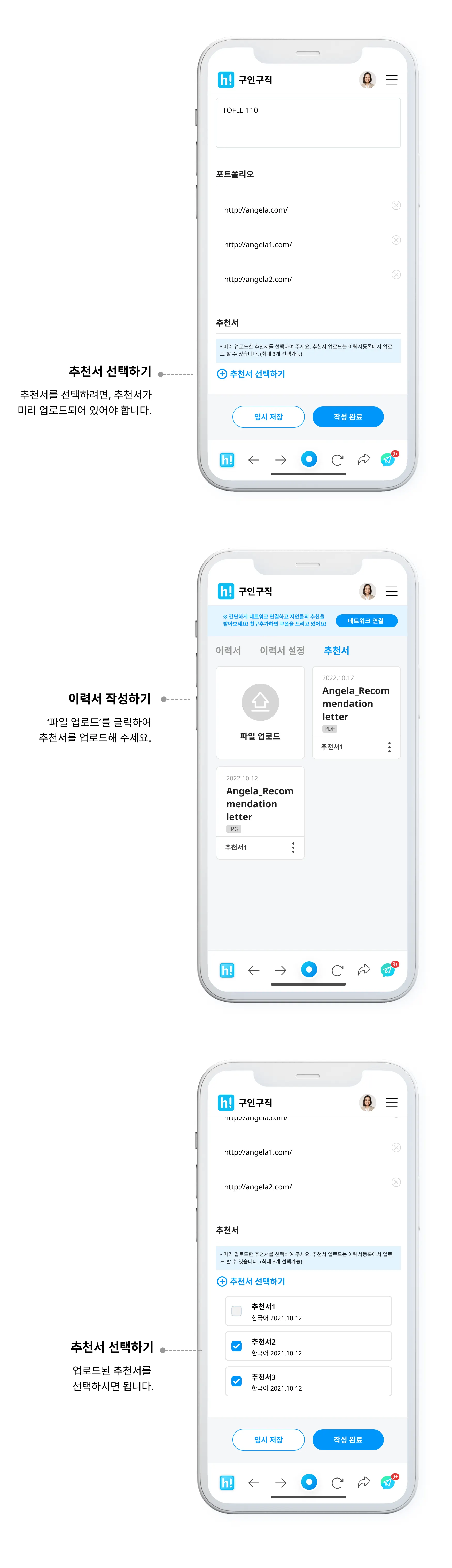 추천서가 미리 업로드되어 있어야 선택 가능합니다.