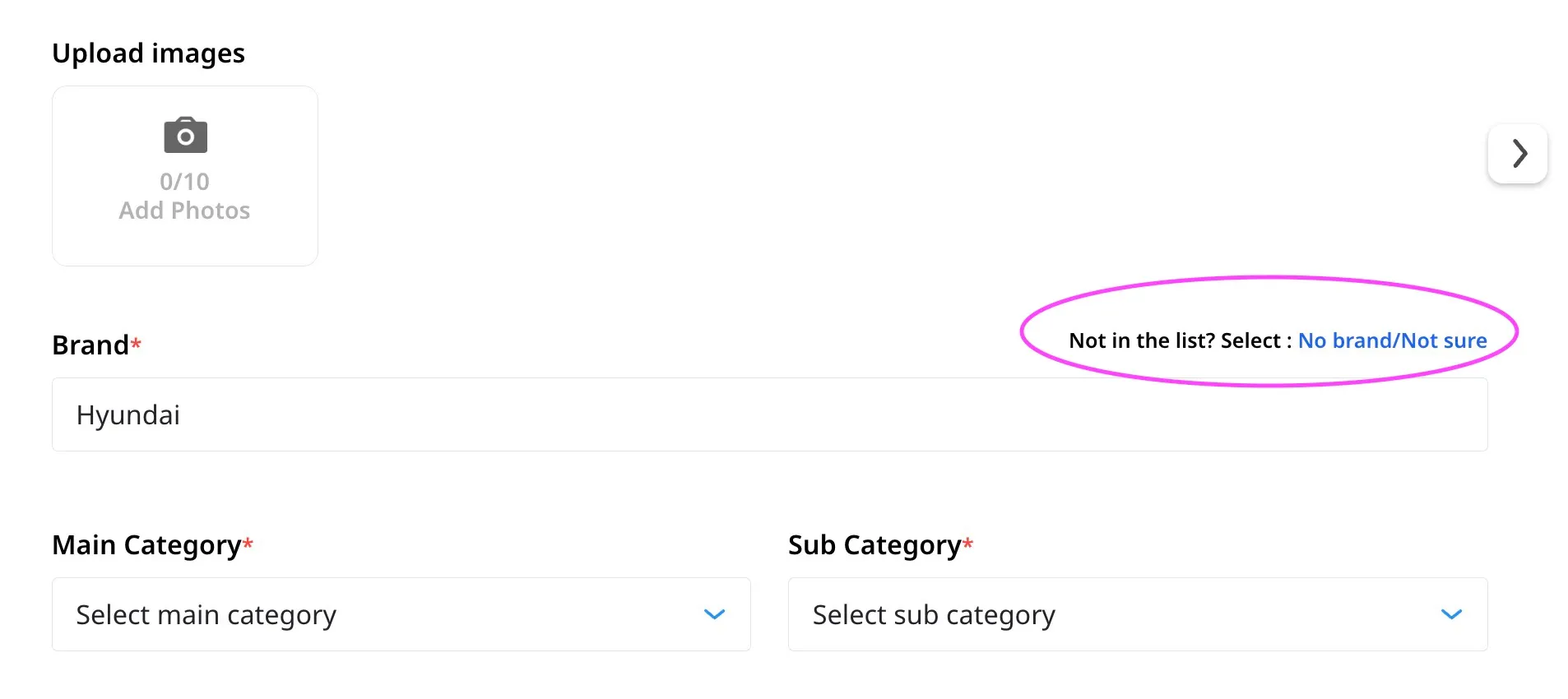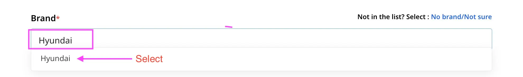 If you can't find the brand in the list, or if you don't know the brand name, click on 'No Brand/Not Sure' at the top.